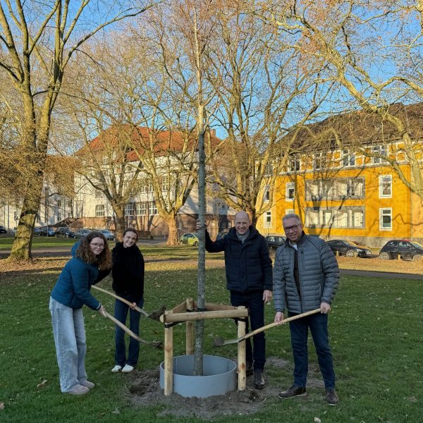 Am 15.12.2025 haben wir gemeinsam unseren Helmholtz-Baum „gepflanzt“. Dabei handelt es sich um eine Linde, die nun auf der anderen Straßenseite vor dem Gebäude des Bündelungsjahrgangs steht und künftig ein sichtbares Zeichen für Nachhaltigkeit und Klimaschutz setzt. Das Beitragsbild zeigt von links: Lola de la Fontaine (Schülersprecherin), Mathilda Brün (stellv. Schülersprecherin), Joachim Held (Schulleiter), Ali…